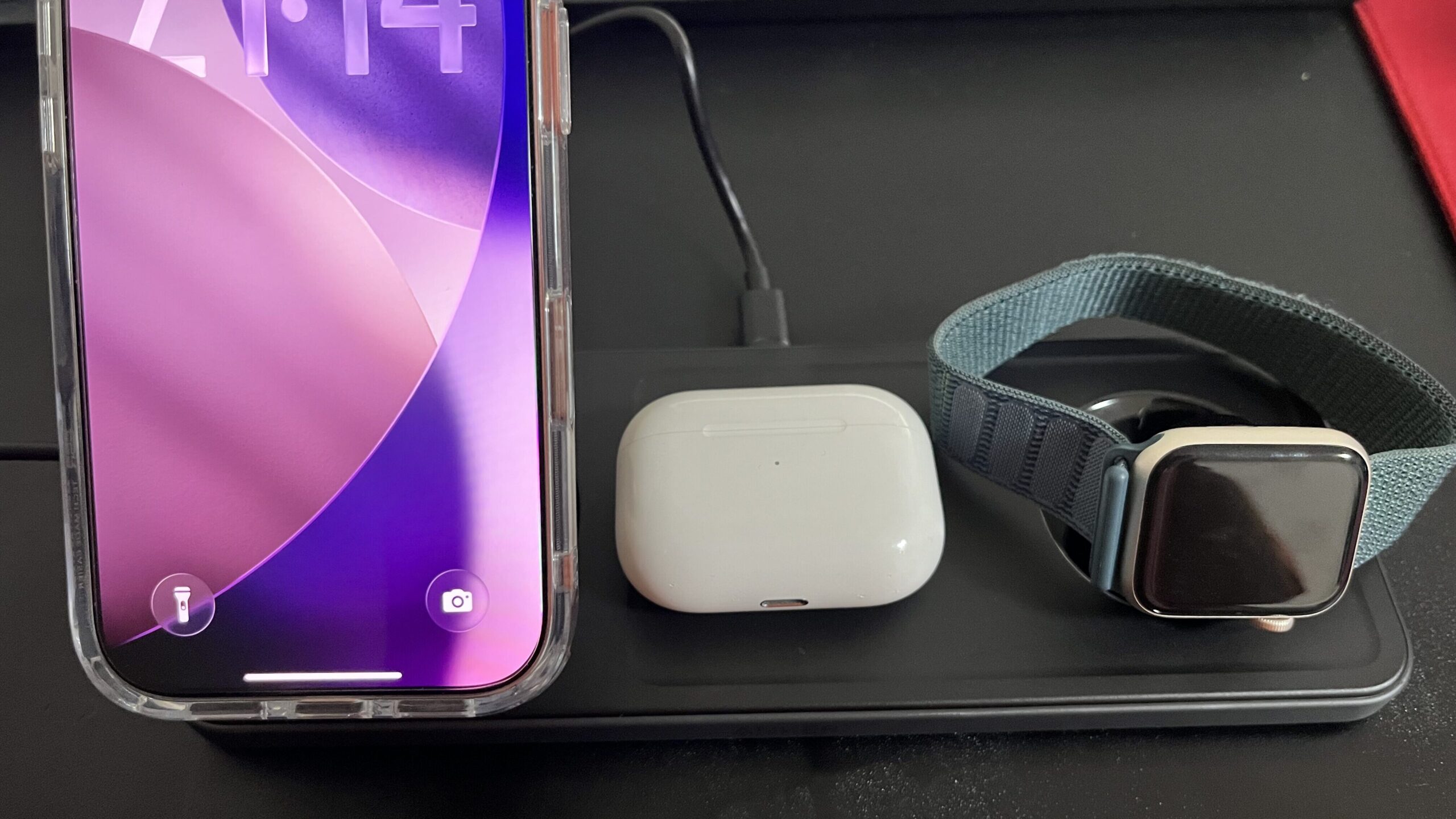 ケーブルが減ってデスクまわりがスッキリしたのが一番のメリットでした。iPhone・Apple Watch・AirPodsをまとめて充電できるので、毎日の小さな手間もなくなりましたね。