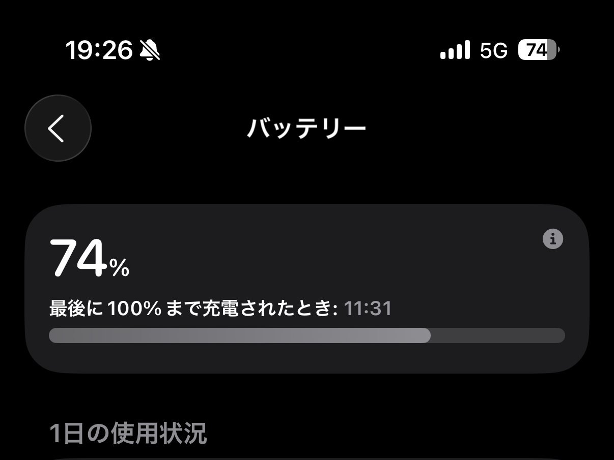 以前の僕は最大容量72%のバッテリーを使っていたので雲泥の差です笑